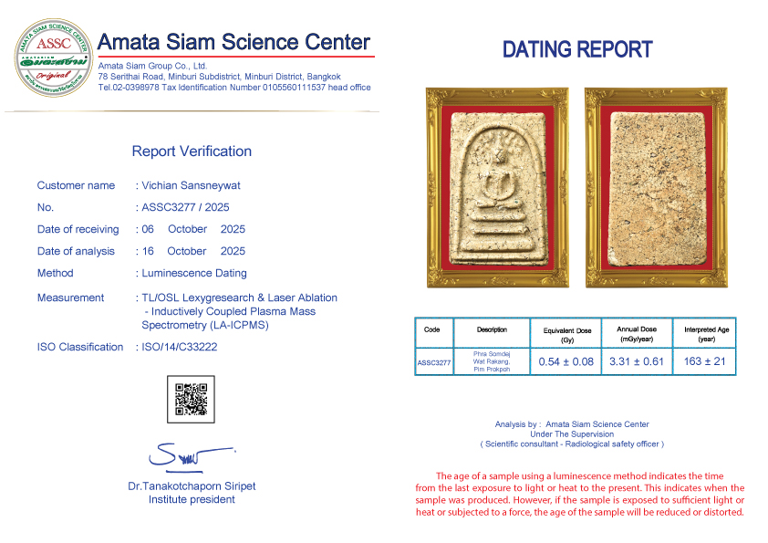 In conclusion, however, scientific procedure still can’t tell the pureness of amulets but can tell how long they have been constructed. However Amata Siam is an expert of natural science and combining scientific procedure will soon tell the exact age of the antiques.