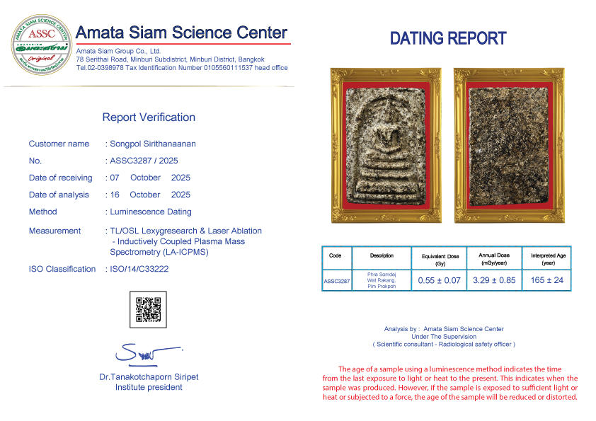 In conclusion, however, scientific procedure still can’t tell the pureness of amulets but can tell how long they have been constructed. However Amata Siam is an expert of natural science and combining scientific procedure will soon tell the exact age of the antiques.