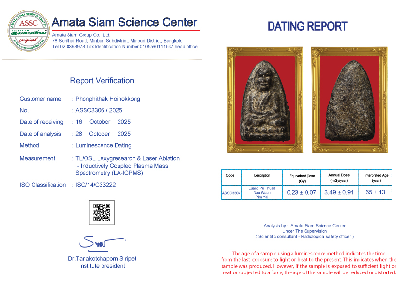 In conclusion, however, scientific procedure still can’t tell the pureness of amulets but can tell how long they have been constructed. However Amata Siam is an expert of natural science and combining scientific procedure will soon tell the exact age of the antiques.
