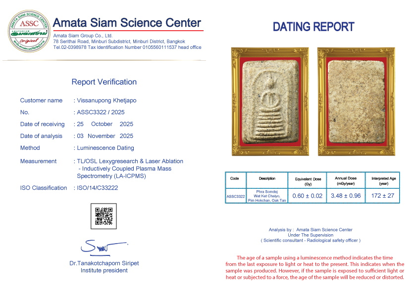 In conclusion, however, scientific procedure still can’t tell the pureness of amulets but can tell how long they have been constructed. However Amata Siam is an expert of natural science and combining scientific procedure will soon tell the exact age of the antiques.
