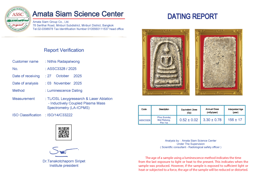In conclusion, however, scientific procedure still can’t tell the pureness of amulets but can tell how long they have been constructed. However Amata Siam is an expert of natural science and combining scientific procedure will soon tell the exact age of the antiques.