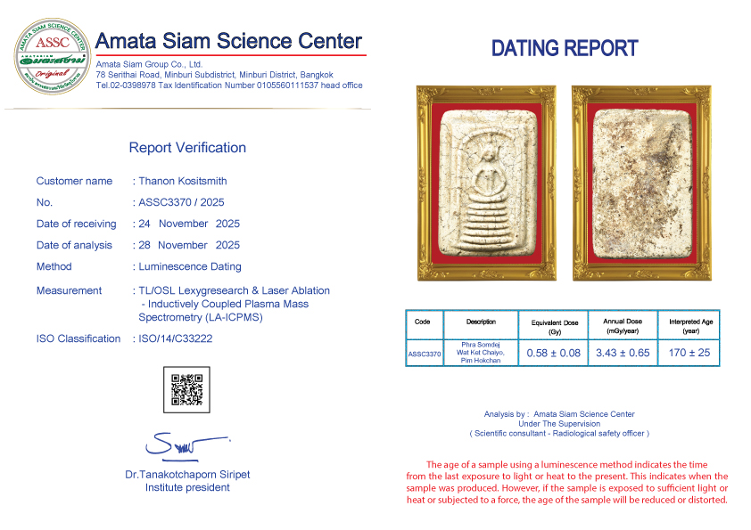 In conclusion, however, scientific procedure still can’t tell the pureness of amulets but can tell how long they have been constructed. However Amata Siam is an expert of natural science and combining scientific procedure will soon tell the exact age of the antiques.