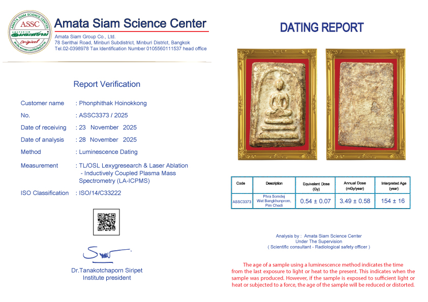 In conclusion, however, scientific procedure still can’t tell the pureness of amulets but can tell how long they have been constructed. However Amata Siam is an expert of natural science and combining scientific procedure will soon tell the exact age of the antiques.