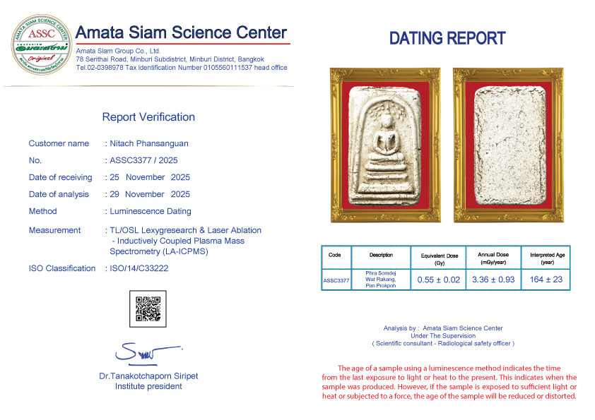 In conclusion, however, scientific procedure still can’t tell the pureness of amulets but can tell how long they have been constructed. However Amata Siam is an expert of natural science and combining scientific procedure will soon tell the exact age of the antiques.