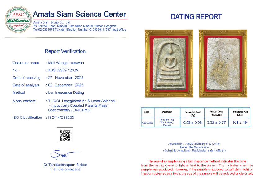 In conclusion, however, scientific procedure still can’t tell the pureness of amulets but can tell how long they have been constructed. However Amata Siam is an expert of natural science and combining scientific procedure will soon tell the exact age of the antiques.