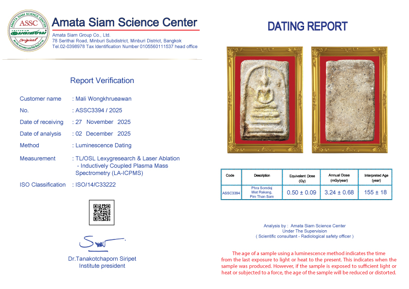 In conclusion, however, scientific procedure still can’t tell the pureness of amulets but can tell how long they have been constructed. However Amata Siam is an expert of natural science and combining scientific procedure will soon tell the exact age of the antiques.