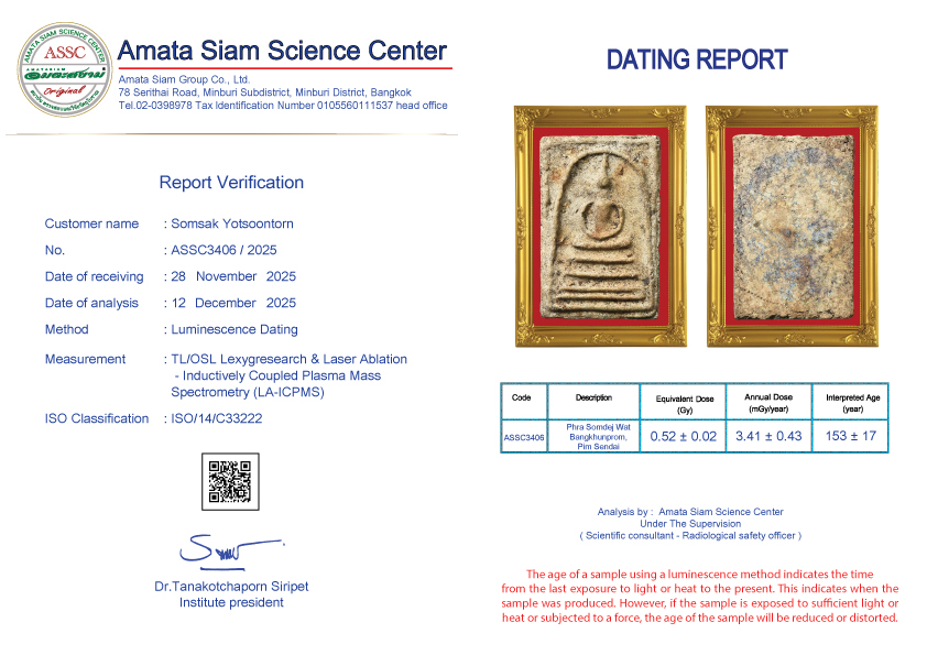 In conclusion, however, scientific procedure still can’t tell the pureness of amulets but can tell how long they have been constructed. However Amata Siam is an expert of natural science and combining scientific procedure will soon tell the exact age of the antiques.