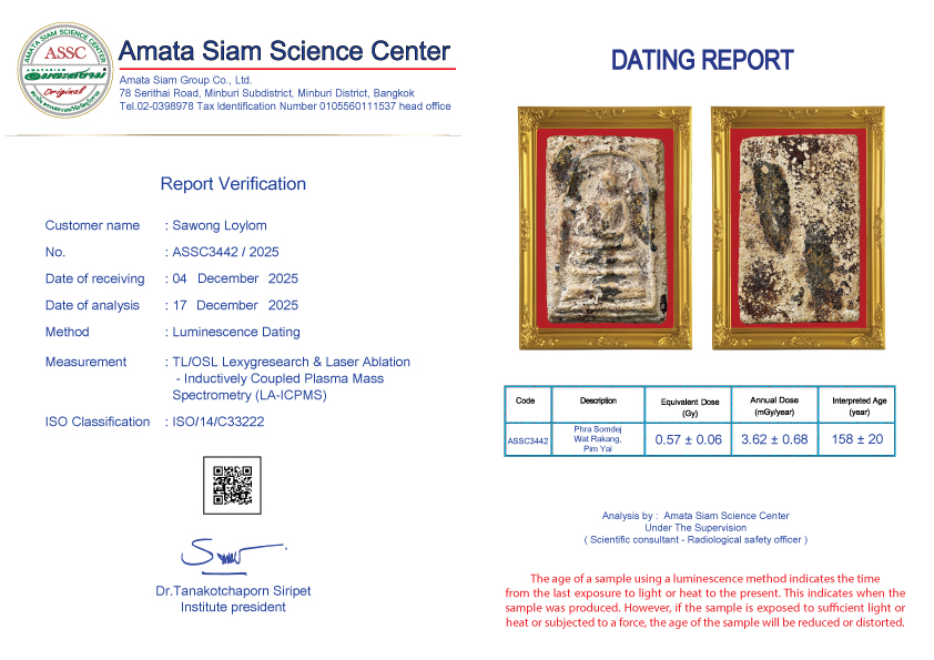In conclusion, however, scientific procedure still can’t tell the pureness of amulets but can tell how long they have been constructed. However Amata Siam is an expert of natural science and combining scientific procedure will soon tell the exact age of the antiques.