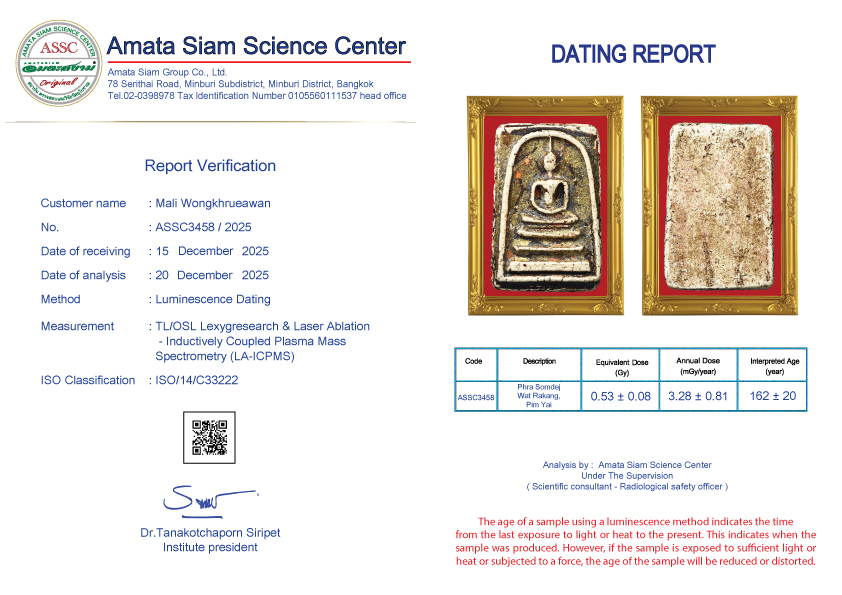 In conclusion, however, scientific procedure still can’t tell the pureness of amulets but can tell how long they have been constructed. However Amata Siam is an expert of natural science and combining scientific procedure will soon tell the exact age of the antiques.