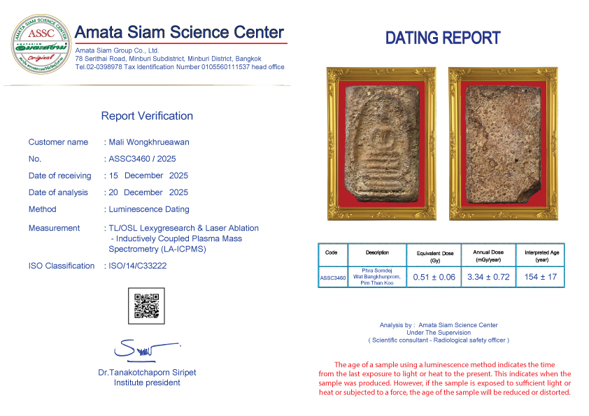 In conclusion, however, scientific procedure still can’t tell the pureness of amulets but can tell how long they have been constructed. However Amata Siam is an expert of natural science and combining scientific procedure will soon tell the exact age of the antiques.