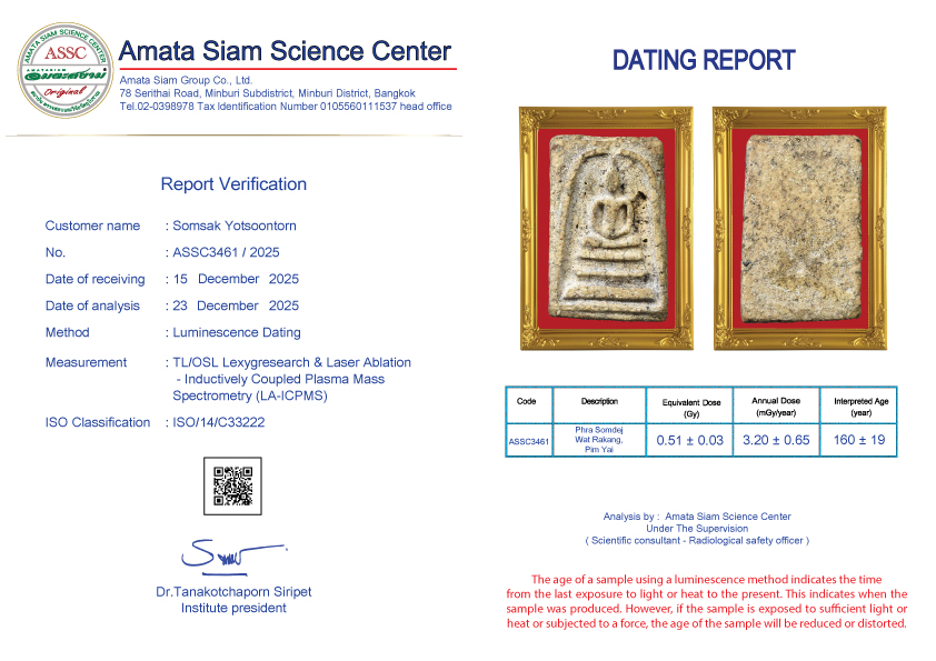 In conclusion, however, scientific procedure still can’t tell the pureness of amulets but can tell how long they have been constructed. However Amata Siam is an expert of natural science and combining scientific procedure will soon tell the exact age of the antiques.