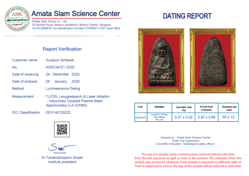 In conclusion, however, scientific procedure still can’t tell the pureness of amulets but can tell how long they have been constructed. However Amata Siam is an expert of natural science and combining scientific procedure will soon tell the exact age of the antiques.