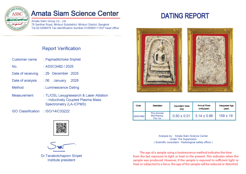 In conclusion, however, scientific procedure still can’t tell the pureness of amulets but can tell how long they have been constructed. However Amata Siam is an expert of natural science and combining scientific procedure will soon tell the exact age of the antiques.