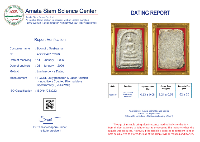 In conclusion, however, scientific procedure still can’t tell the pureness of amulets but can tell how long they have been constructed. However Amata Siam is an expert of natural science and combining scientific procedure will soon tell the exact age of the antiques.