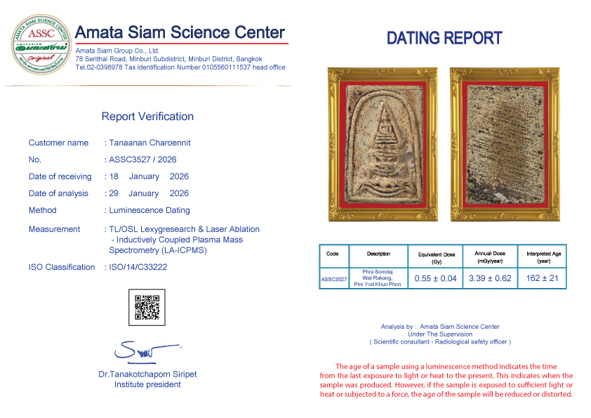 In conclusion, however, scientific procedure still can’t tell the pureness of amulets but can tell how long they have been constructed. However Amata Siam is an expert of natural science and combining scientific procedure will soon tell the exact age of the antiques.