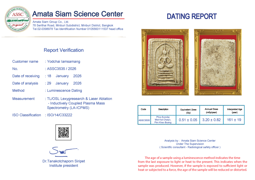 In conclusion, however, scientific procedure still can’t tell the pureness of amulets but can tell how long they have been constructed. However Amata Siam is an expert of natural science and combining scientific procedure will soon tell the exact age of the antiques.