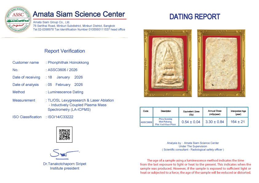 然而,科学过程仍然无法辨别护身符的真伪。但可以看出那个特定的护身符。建了多久? Amata Siam也有自然科学方面的专家,在将科学过程与自然科学相结合时崩溃、收缩、枯萎。因此能够准确分辨新旧。