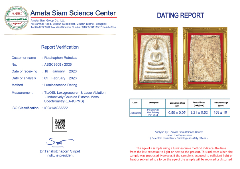 In conclusion, however, scientific procedure still can’t tell the pureness of amulets but can tell how long they have been constructed. However Amata Siam is an expert of natural science and combining scientific procedure will soon tell the exact age of the antiques.