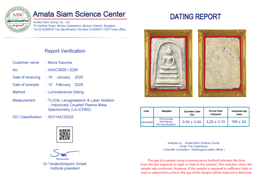 In conclusion, however, scientific procedure still can’t tell the pureness of amulets but can tell how long they have been constructed. However Amata Siam is an expert of natural science and combining scientific procedure will soon tell the exact age of the antiques.