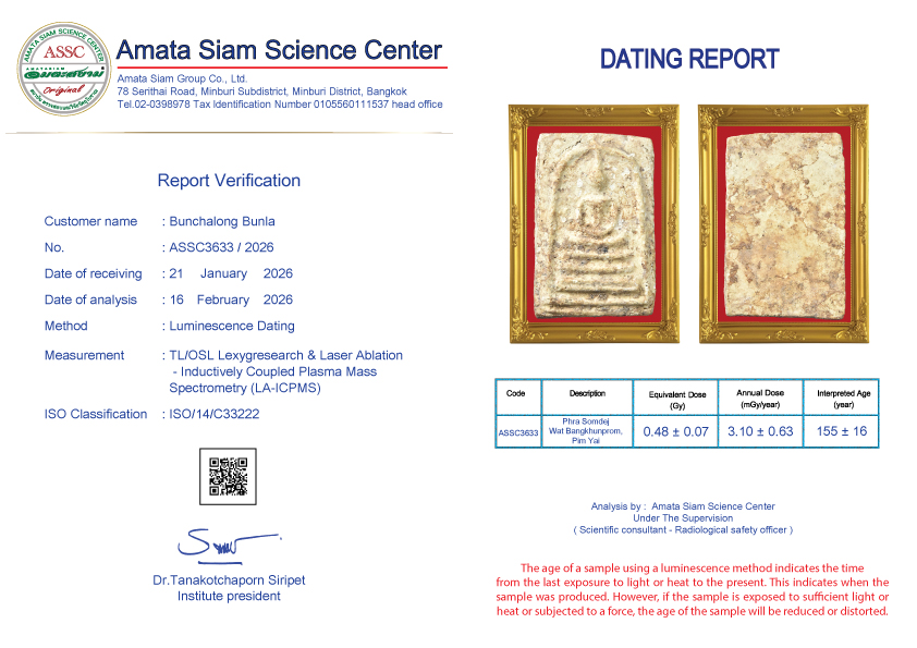 In conclusion, however, scientific procedure still can’t tell the pureness of amulets but can tell how long they have been constructed. However Amata Siam is an expert of natural science and combining scientific procedure will soon tell the exact age of the antiques.