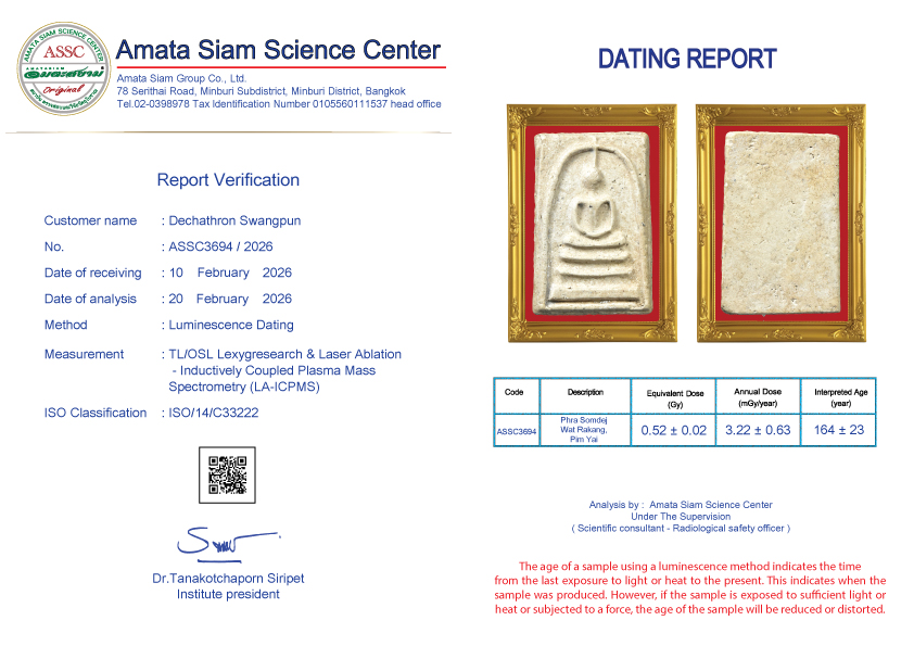 In conclusion, however, scientific procedure still can’t tell the pureness of amulets but can tell how long they have been constructed. However Amata Siam is an expert of natural science and combining scientific procedure will soon tell the exact age of the antiques.