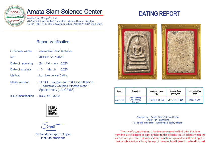 In conclusion, however, scientific procedure still can’t tell the pureness of amulets but can tell how long they have been constructed. However Amata Siam is an expert of natural science and combining scientific procedure will soon tell the exact age of the antiques.