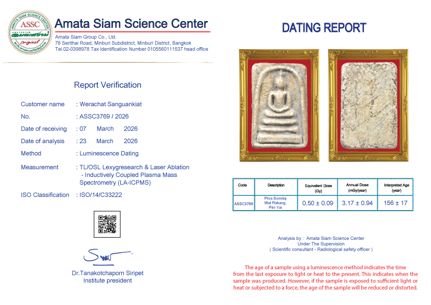 In conclusion, however, scientific procedure still can’t tell the pureness of amulets but can tell how long they have been constructed. However Amata Siam is an expert of natural science and combining scientific procedure will soon tell the exact age of the antiques.