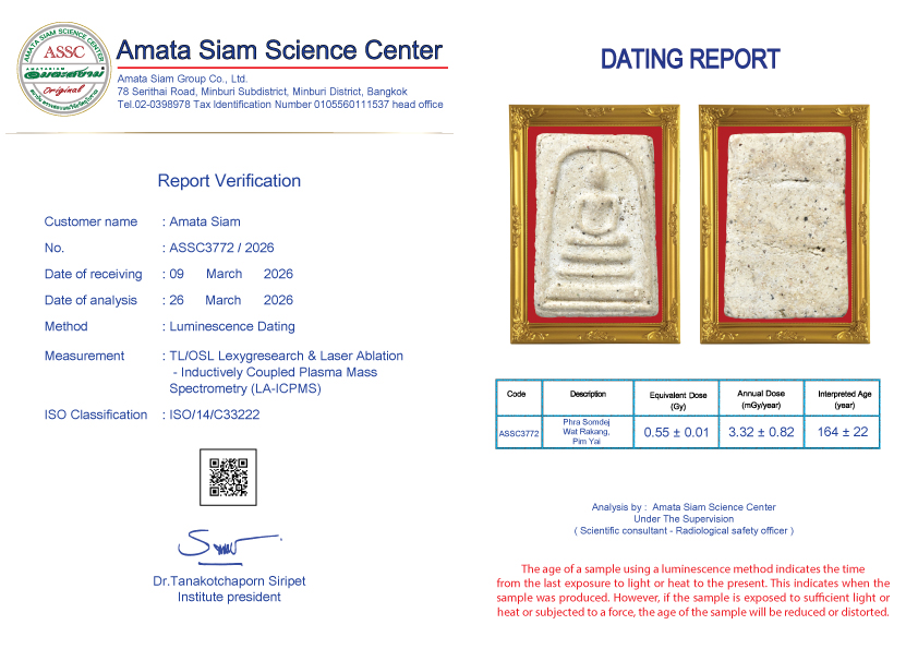 In conclusion, however, scientific procedure still can’t tell the pureness of amulets but can tell how long they have been constructed. However Amata Siam is an expert of natural science and combining scientific procedure will soon tell the exact age of the antiques.