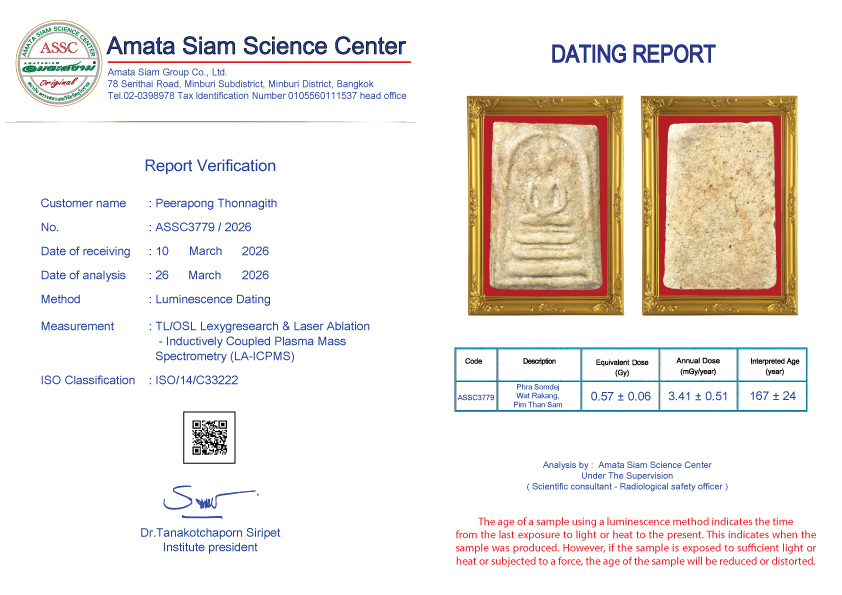 In conclusion, however, scientific procedure still can’t tell the pureness of amulets but can tell how long they have been constructed. However Amata Siam is an expert of natural science and combining scientific procedure will soon tell the exact age of the antiques.