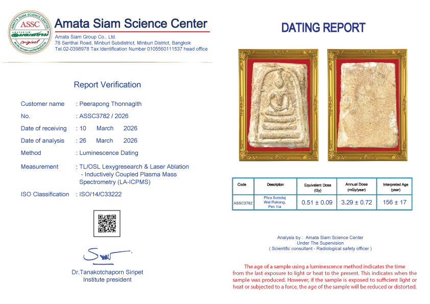 In conclusion, however, scientific procedure still can’t tell the pureness of amulets but can tell how long they have been constructed. However Amata Siam is an expert of natural science and combining scientific procedure will soon tell the exact age of the antiques.