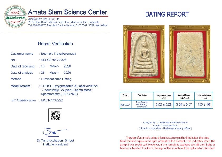 In conclusion, however, scientific procedure still can’t tell the pureness of amulets but can tell how long they have been constructed. However Amata Siam is an expert of natural science and combining scientific procedure will soon tell the exact age of the antiques.