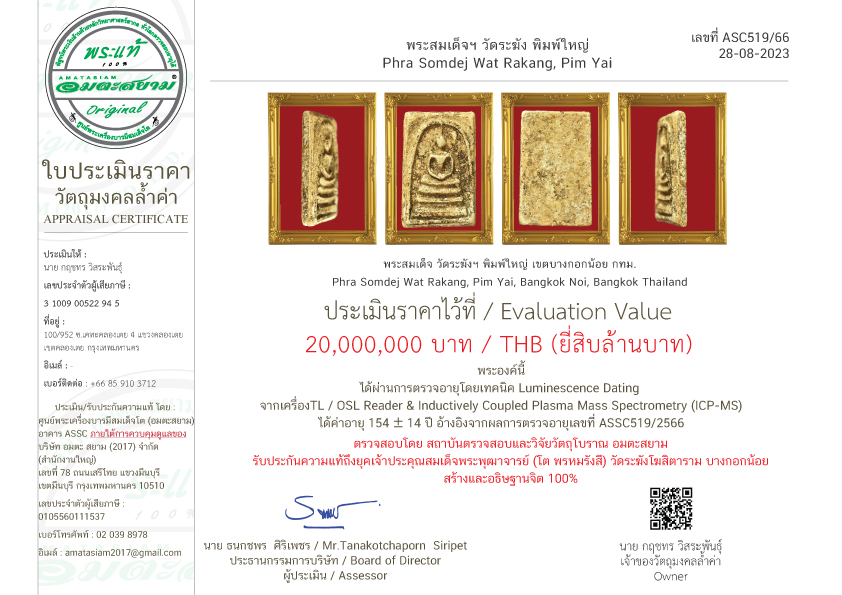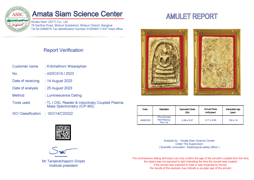 In conclusion, however, scientific procedure still can’t tell the pureness of amulets but can tell how long they have been constructed. However Amata Siam is an expert of natural science and combining scientific procedure will soon tell the exact age of the antiques.