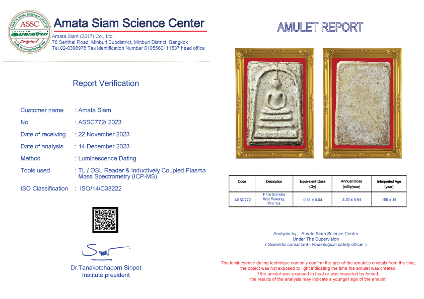 In conclusion, however, scientific procedure still can’t tell the pureness of amulets but can tell how long they have been constructed. However Amata Siam is an expert of natural science and combining scientific procedure will soon tell the exact age of the antiques.
